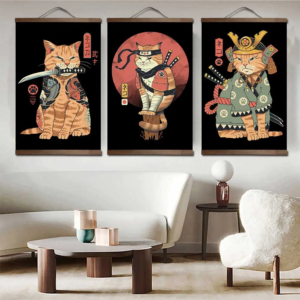 Холст в японском стиле с Самураем, кошкой, украшение для дома, Наст...