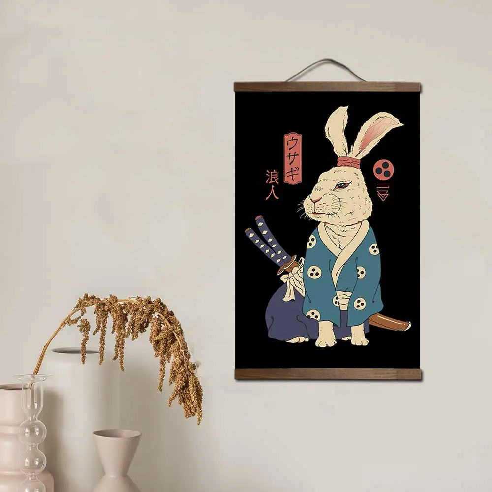 Украшение на холсте самурайский Кот кролик в японском стиле, стена из массива дерева в стиле аниме для магазина, спальни, гостиной