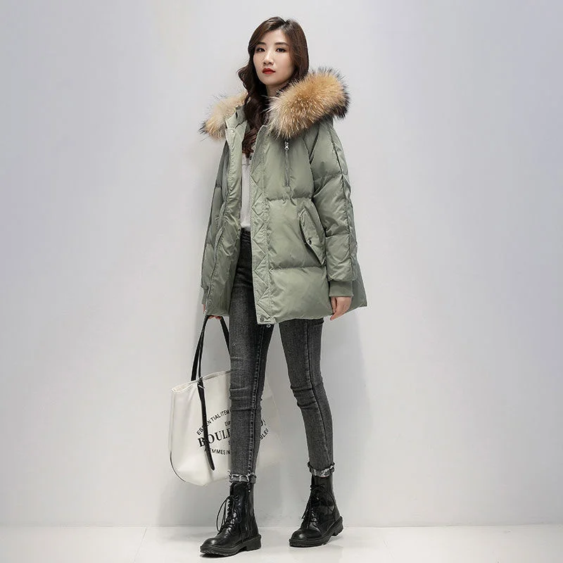 Luzuzi 2021 Новая зимняя Женская парка с меховым воротником куртки ...