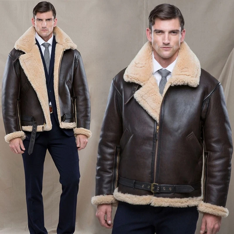 2021 зимняя кожаная куртка-бомбер, мужская теплая куртка из овечьей шкуры, куртка-пилот, мужская шуба из натуральной овчины, Новинка