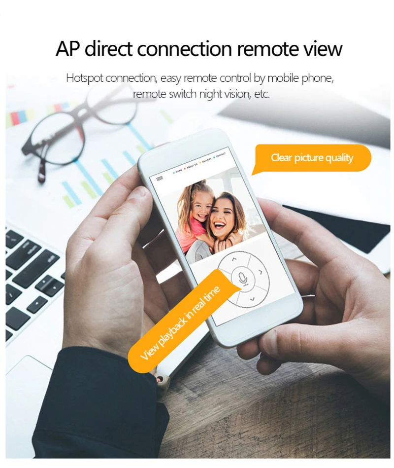 -Эта беспроводная ip-камера может работать по Wi-Fi (2,4 ГГц только Wi-Fi) или нет Wi-Fi. Когда он работает без WiFi, вставьте tf-карту (tf-карта не входит в комплект) и включите, камера Записывает и сохраняет видеофайлы на tf-карту (tf-карта не входит в комплект).