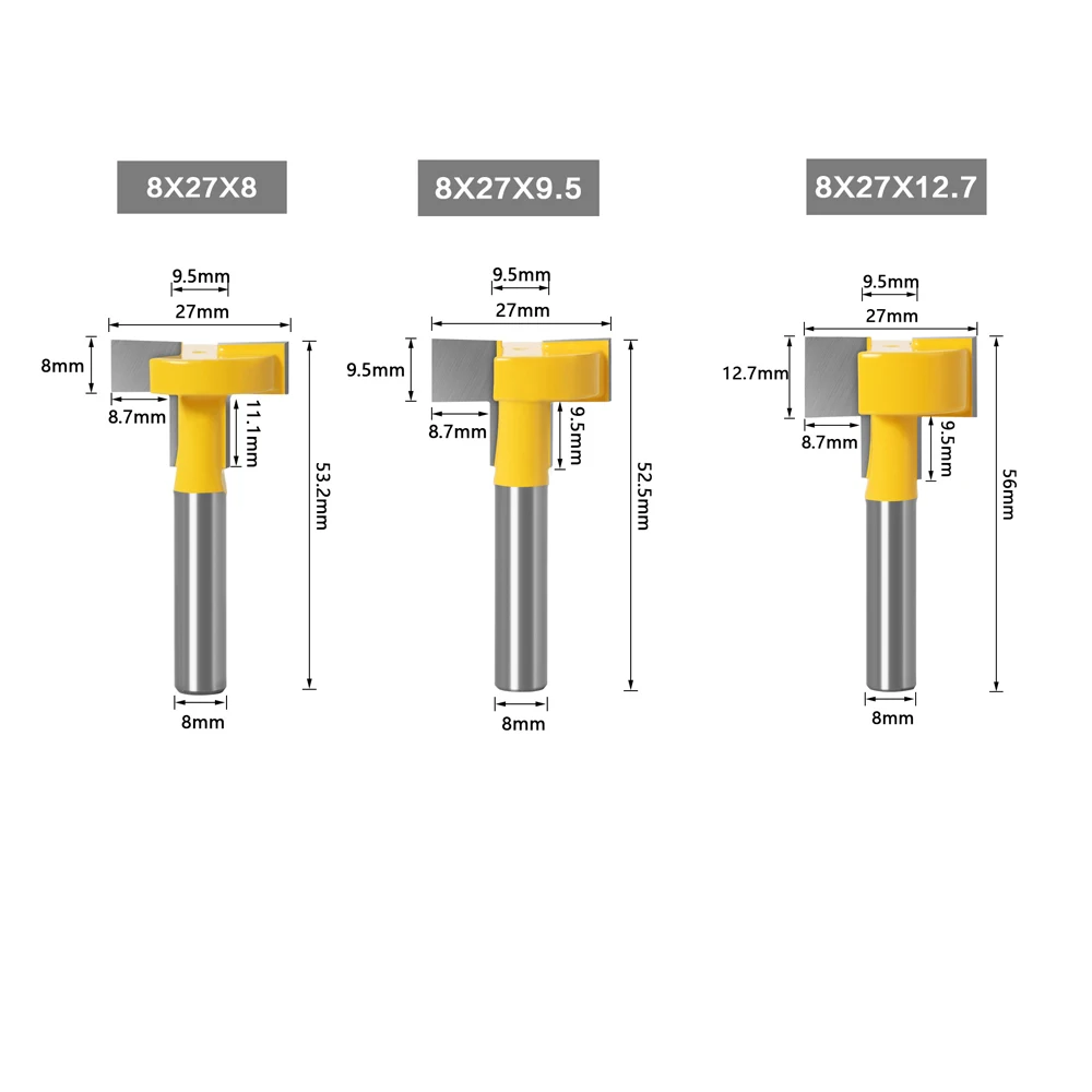 3шт 8мм хвостовик фрезы по дереву бит Т-образный паз фреза для дерева деревообрабатывающий инструмент