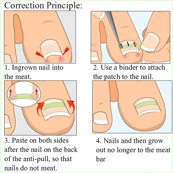 Полный набор для лечения вросших ногтей. Предотвращает повторное проглатывание ногтей с помощью инструмента для коррекции ногтей. Вы можете легко оснастить пластырь с обеих сторон ногтя.