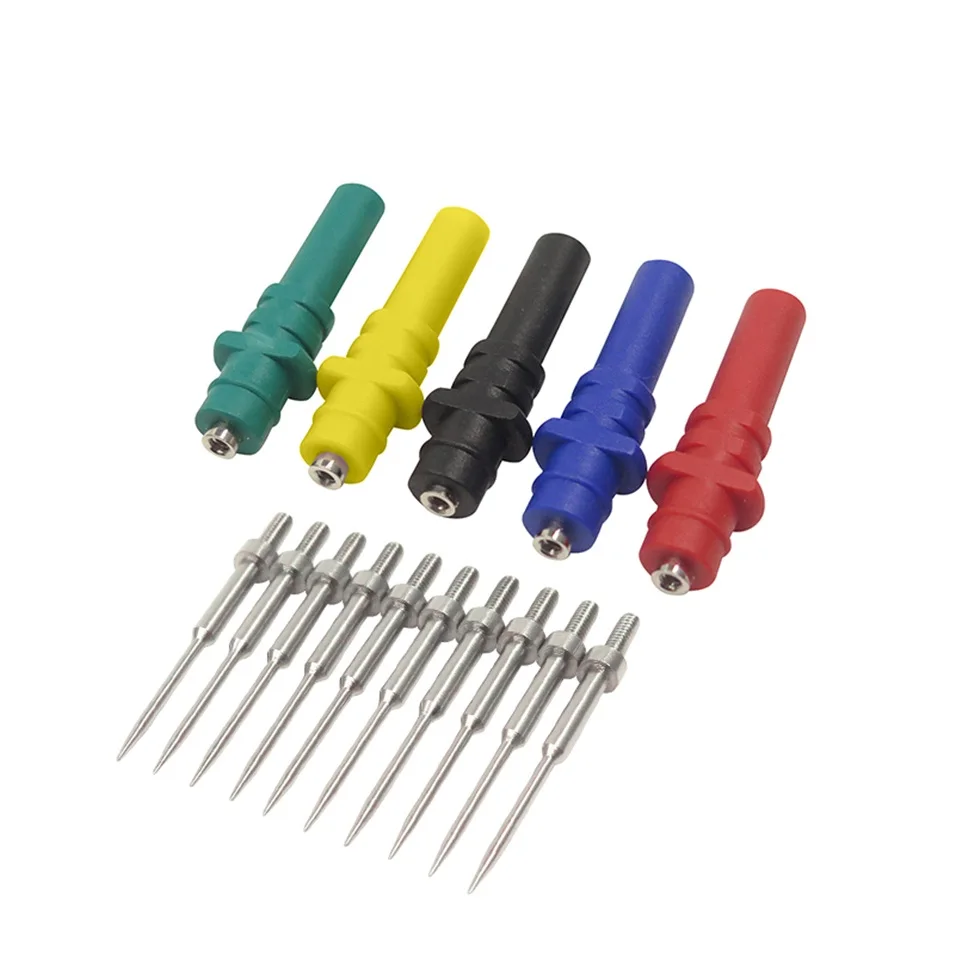 Во-вторых, это зонд для пирсинга. Его небольшой диаметр, дополнительная острая булавка делает его идеальным для пирсинга изоляции на небольших измерительных проводах, где традиционные пирсинг инструменты могут привести к повреждению.Наконец, это лучшая часть-она может быть восстановлена. Если штифт поврежден или бесполезен каким-либо образом, просто возьмите свою карманную отвертку, снимите установочный винт, вытяните старый штифт и установите Новый! Нет необходимости заменять весь зонд.Содержание:5 шт полные акупунктурные зонды20 шт Запасные иглы