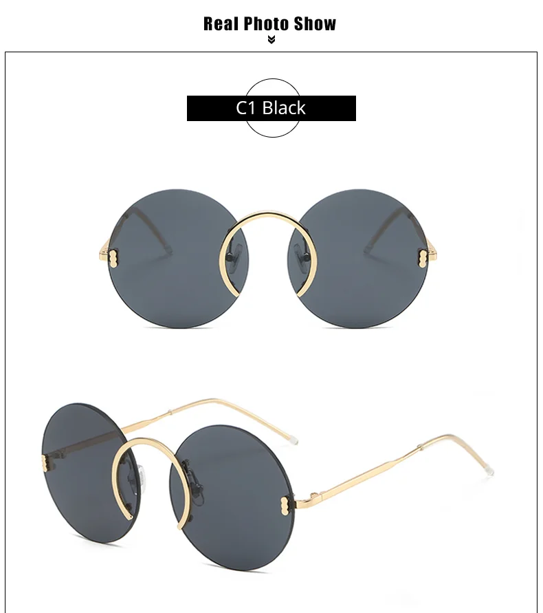 Женские Винтажные Солнцезащитные очки без оправы Ralferty, большие модные круглые УНИКАЛЬНЫЕ Солнцезащитные очки в стиле стимпанк с кольцом для носа