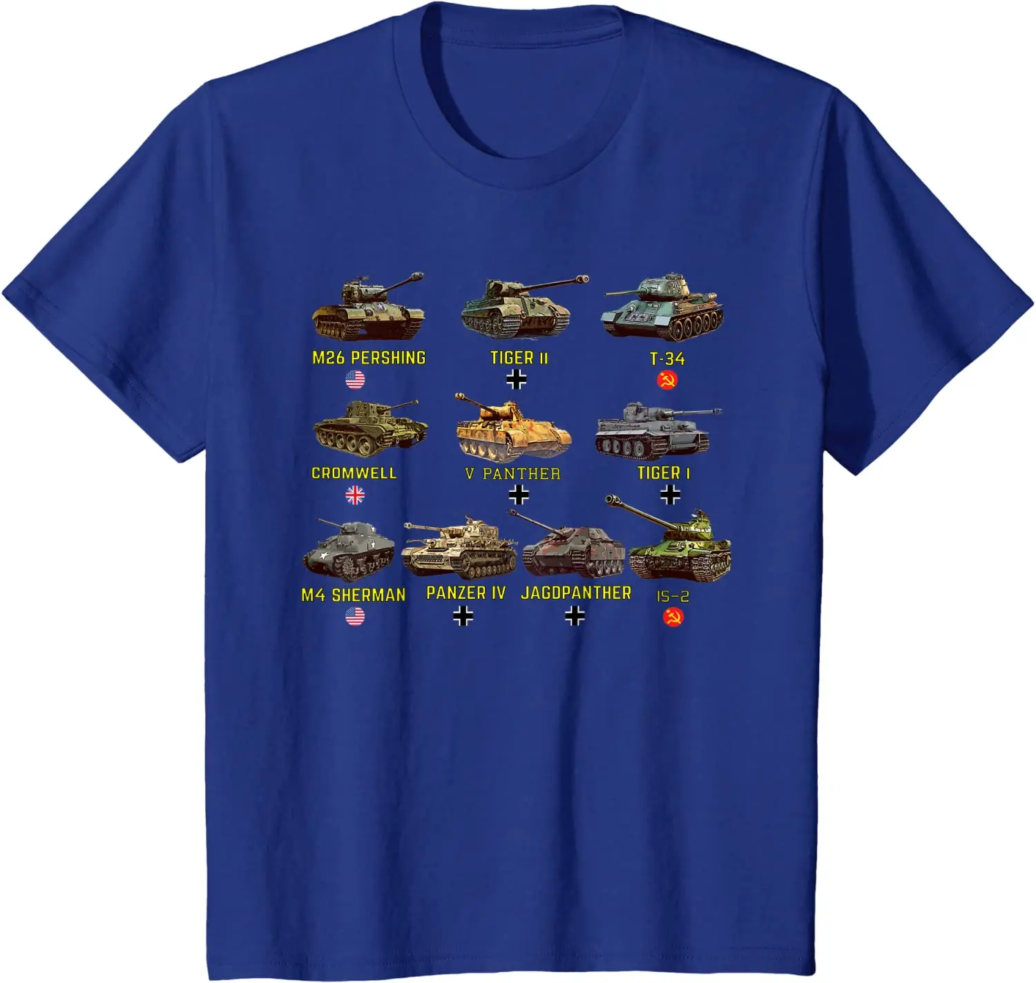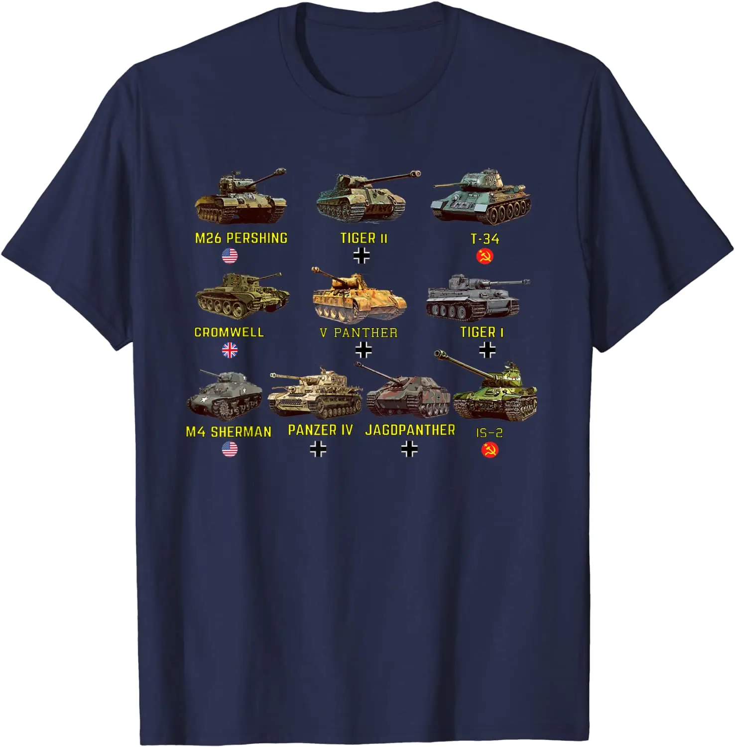 Майки WW2 M4 Sherman Panzer IV Tiger II T-34, Короткие повседневные рубашки из 100% хлопка, размеры S-3XL