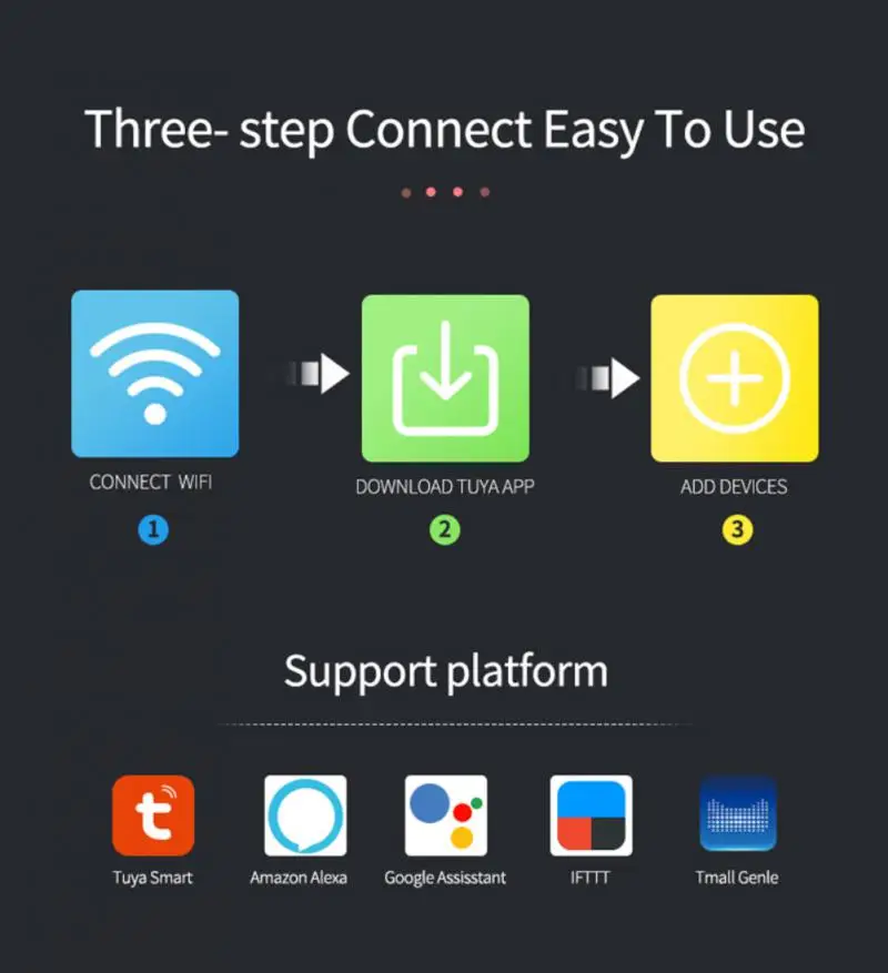 Никаких сложных инструментов установки не требуется. Датчик может быть установлен с двухсторонней лентой или винтами (в комплекте) всего за несколько шагов, И загрузите приложение «tuya» или «Smart Life» из GooglePlay или app Store, чтобы проверить состояние вашей двери/окна.