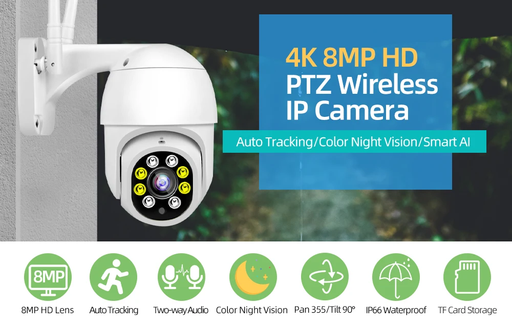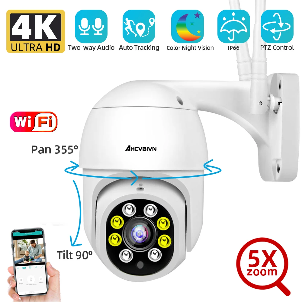 5X Zoom 8MP 4K Беспроводная PTZ камера HD цветное ночное видение Wifi ip-камера наружная H.265 5MP Ai Автоматическая отслеживающая камера видеонаблюдения