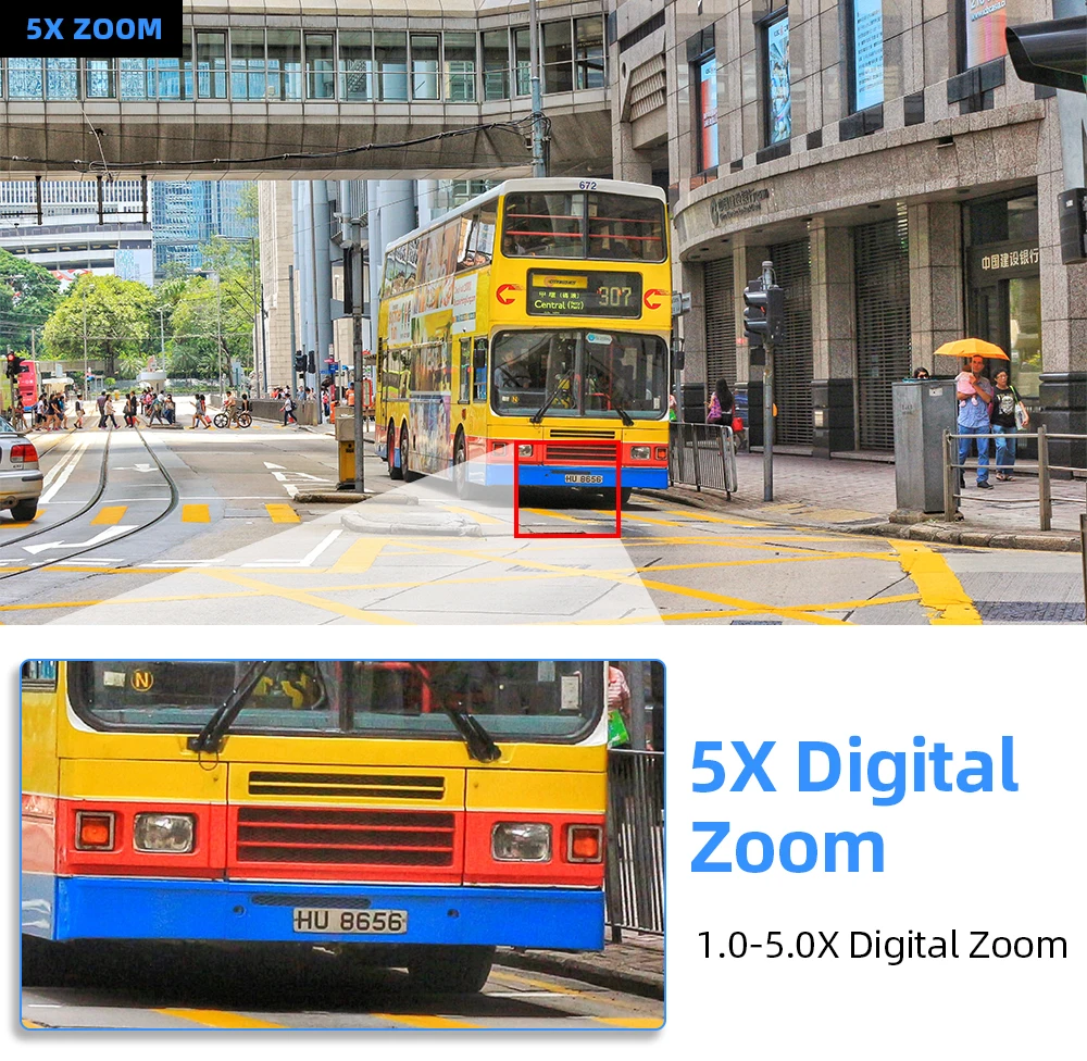 Эта камера поддерживает цифровой зум 5.0X, нажмите и удерживайте экран обеими руками, чтобы увеличить/уменьшить масштаб и увидеть более подробную информацию.