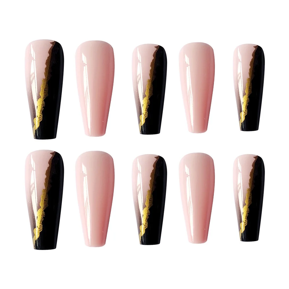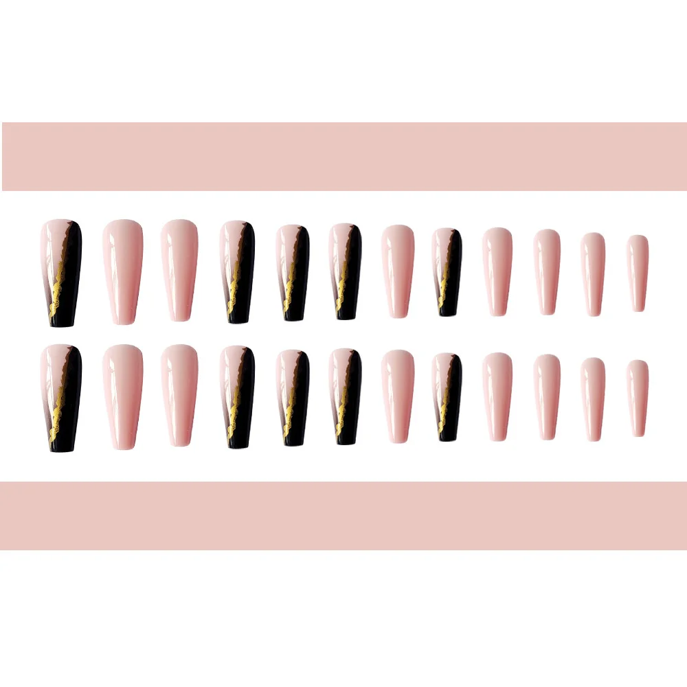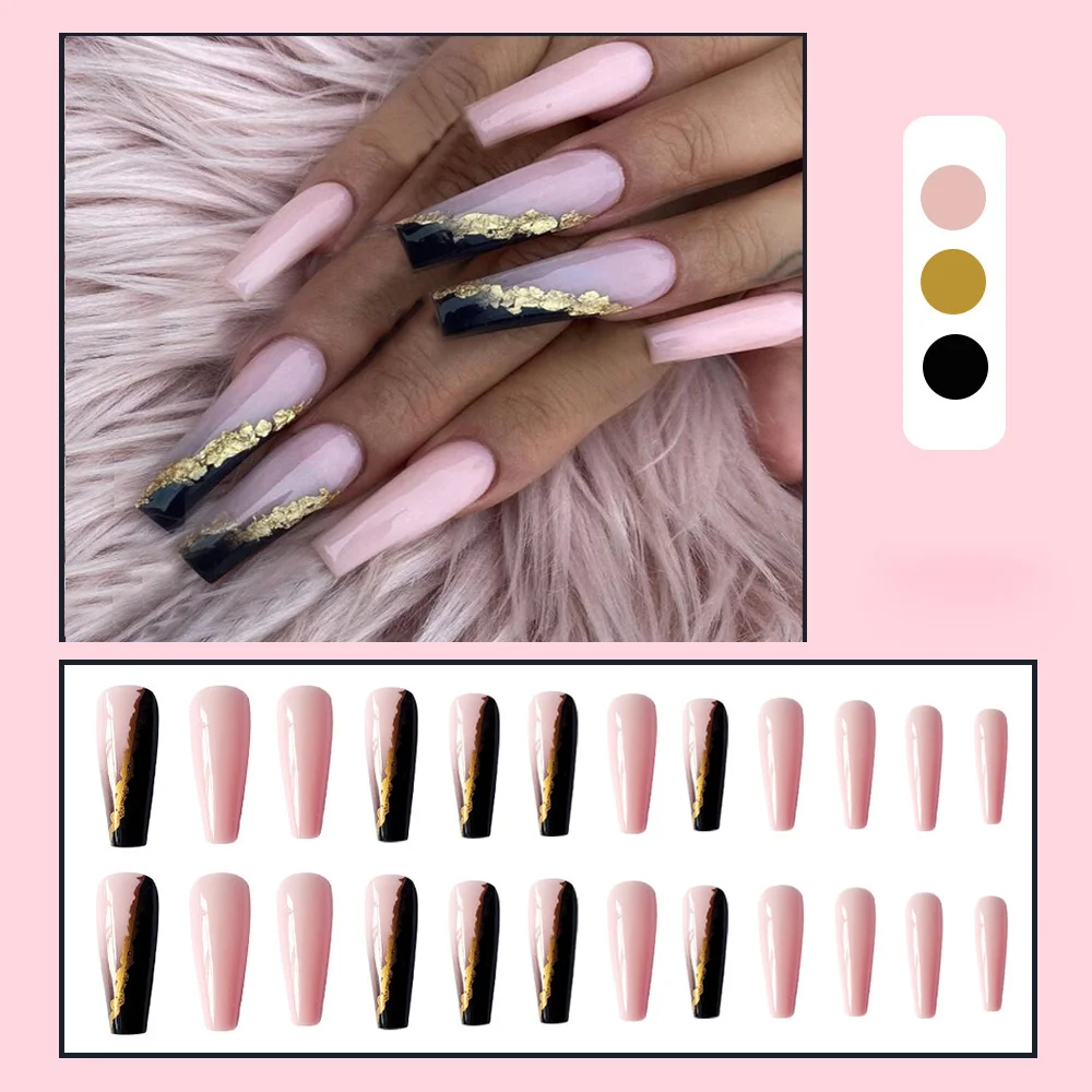 24 шт. сверхдлинные розовые накладные ногти с дизайном из золотой ф...