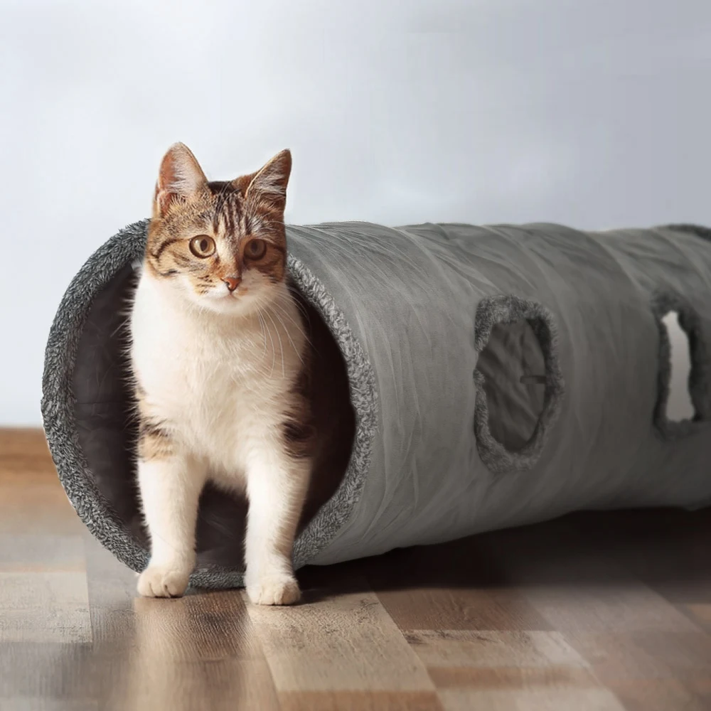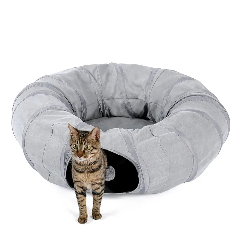 Складная игрушка для кошек, туннель для пересечения препятствий, длинное гнездо, серая кровать для кошек и собак, круглая замшевая дышащая игрушка для домашних животных, развивающая Экологически чистая