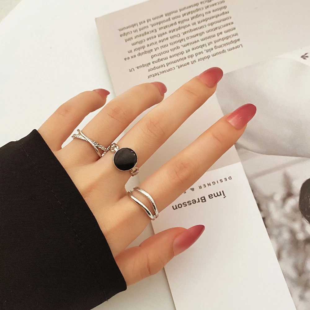 KISSWIFE, 3 шт., Простые металлические кольца золотого и серебряного цвета, набор для женщин, черный, белый цвет, открывающееся кольцо из смолы, новые модные украшения 2022