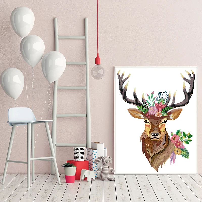 Наборы для вышивки крестиком с узором в виде головы оленя, Набор для вышивки крестиком 11CT 14CT, Набор для вышивки ниткой, украшение