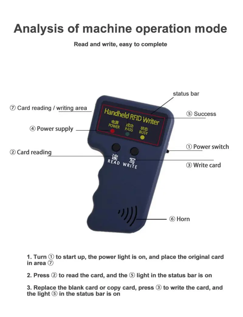 Программатор RFID 125 кГц, Дубликатор, копировальный аппарат, записывающее устройство, устройство для чтения ID-карт и ключей, репликатор карт доступа, устройство для чтения ключей