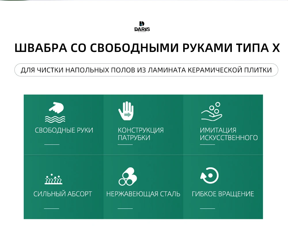 Плоская Швабра X-type со сменными насадками, 360 градусов