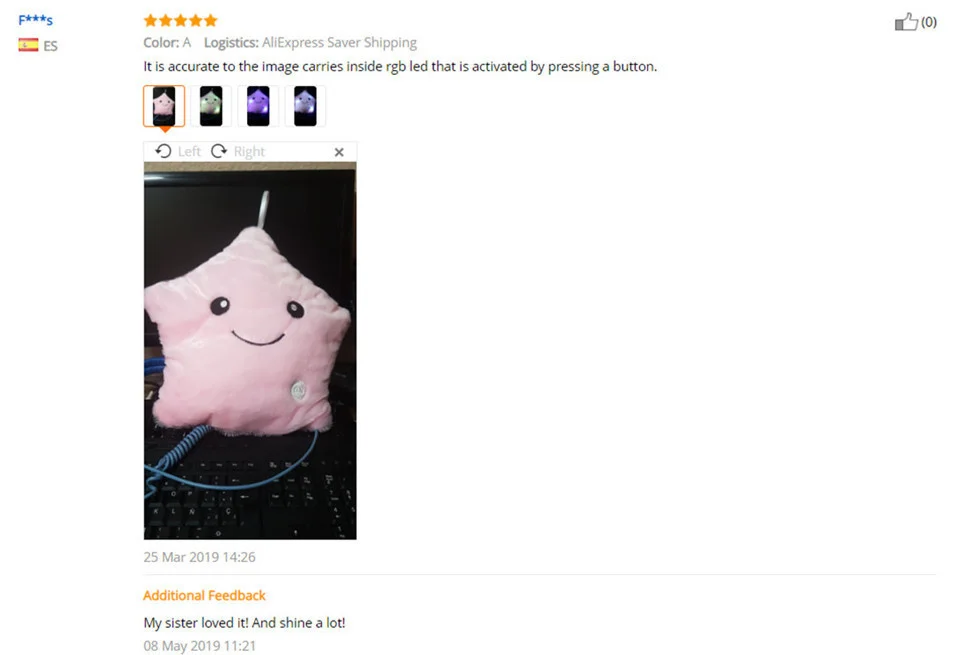 Условия: 100% НовыеРазмер: звезда: 34 смМатериал: плюшУпаковка: 1 шт. в полиэтиленовом пакете (без батарей)