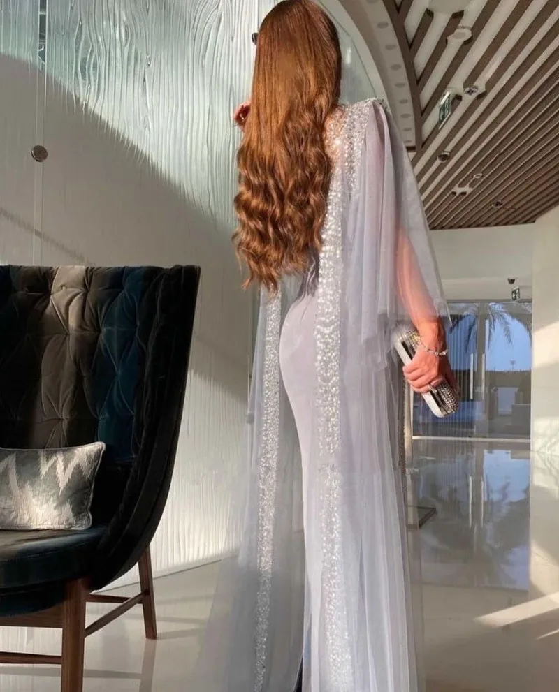 JEHETH элегантное серое синее арабское вечернее платье с рукавом-накидкой длиной до щиколотки Дубай женское вечернее платье для гостей свадьбы