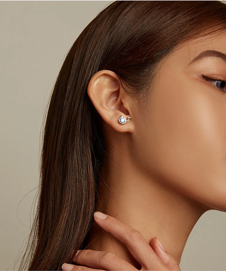 Женские серьги-гвоздики в вечерние Луны, из серебра 925 пробы