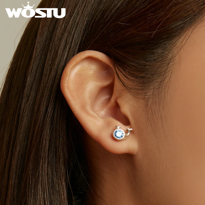 Женские серьги-гвоздики с морскими животными, из серебра 925 пробы