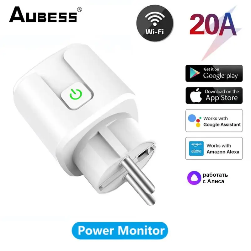 Умная штепсельная вилка, WiFi розетка, адаптер ЕС, 16А, 20А, Функция синхронизации монитора питания, 100-240 В, Tuya SmartLife, приложение, работает с Alexa Google Alice
