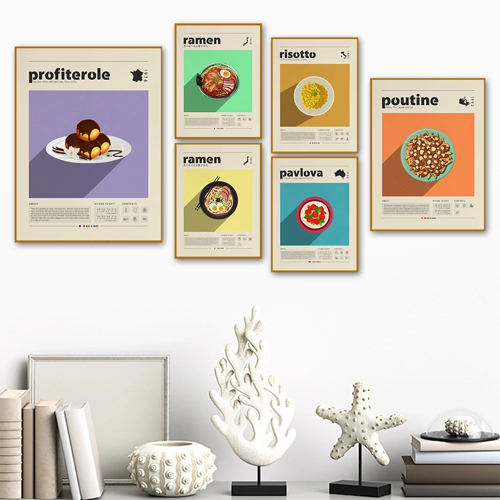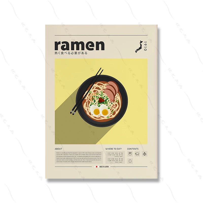 Плакат с рамен, пиццей, японский, Канада, итальянские продукты, ретро-холст, новоселье, подарок, кухонный декор, Минималистичная Настенная картина
