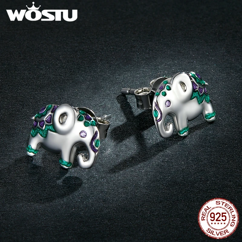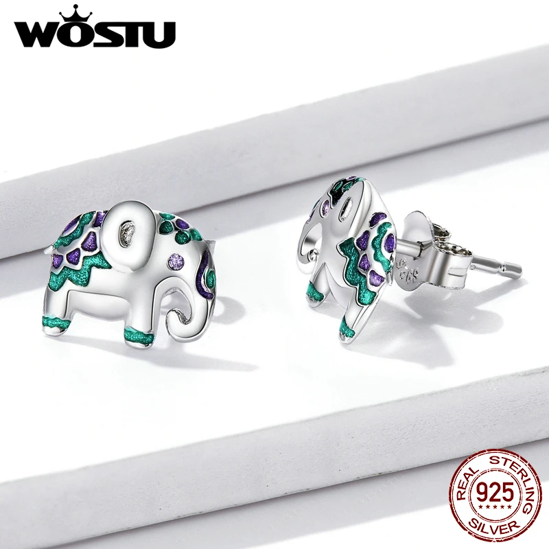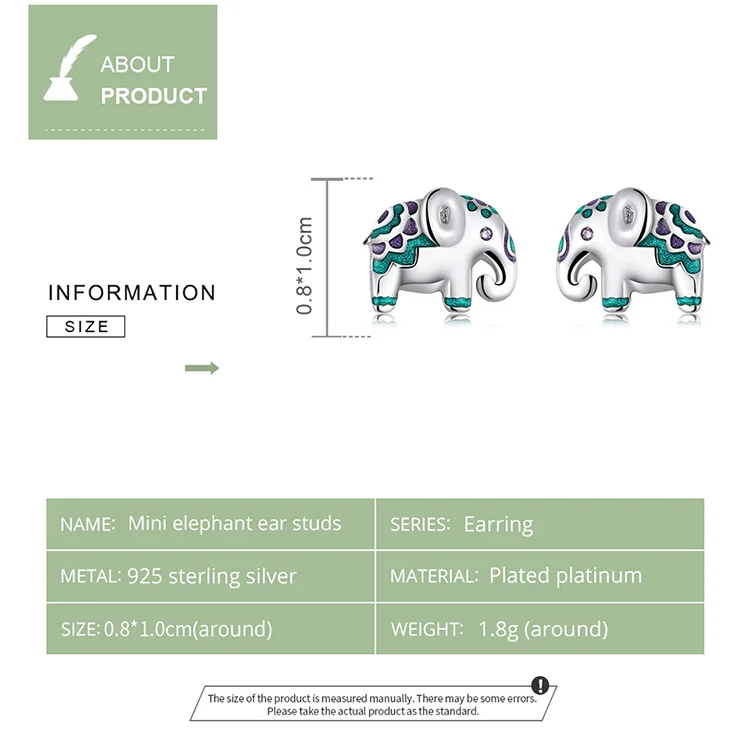 Женские серьги-гвоздики в виде слона из серебра 925 пробы