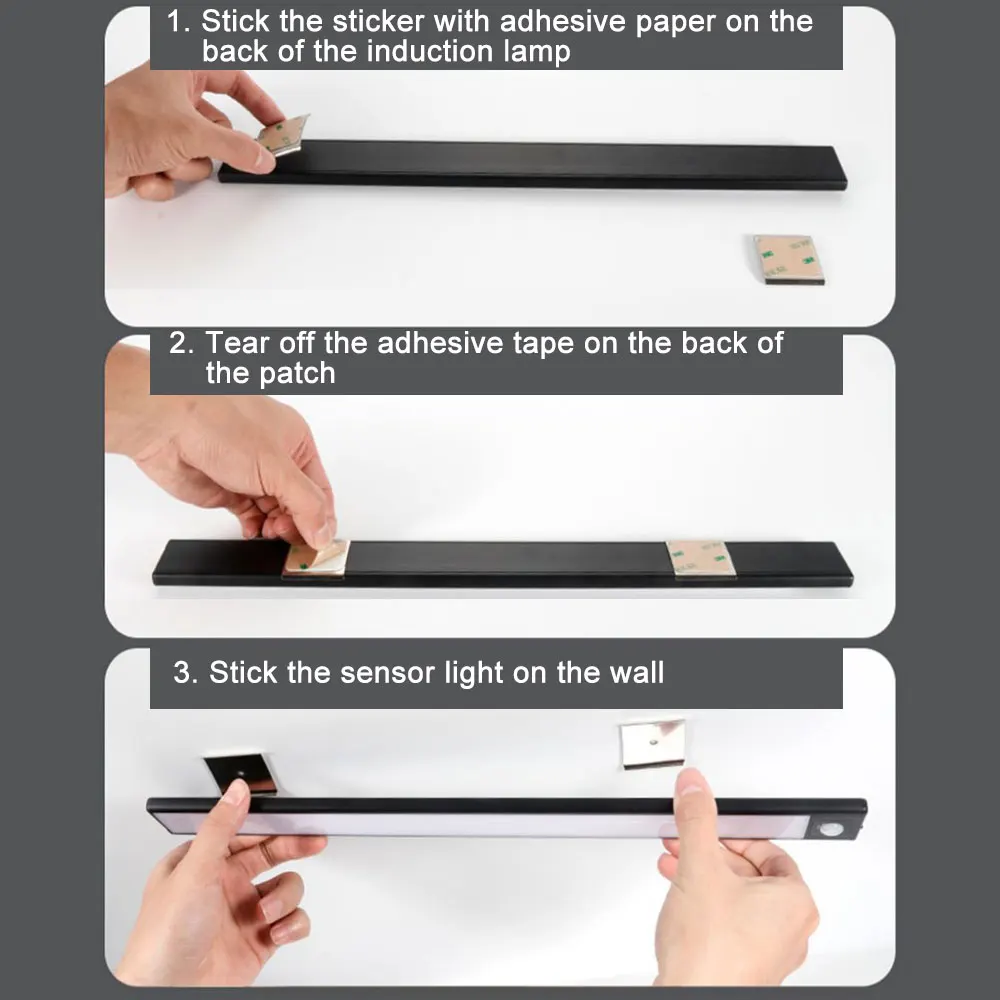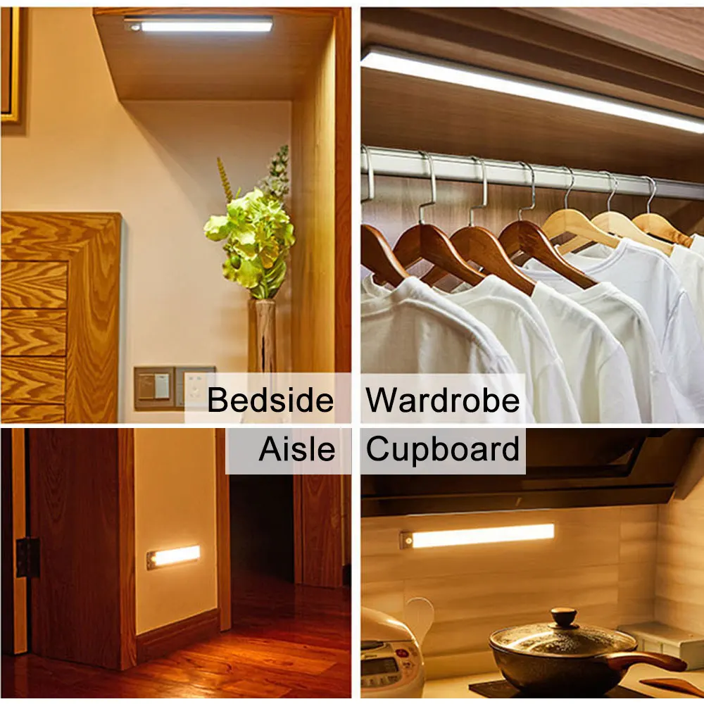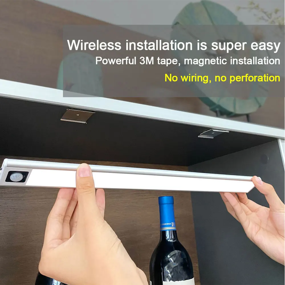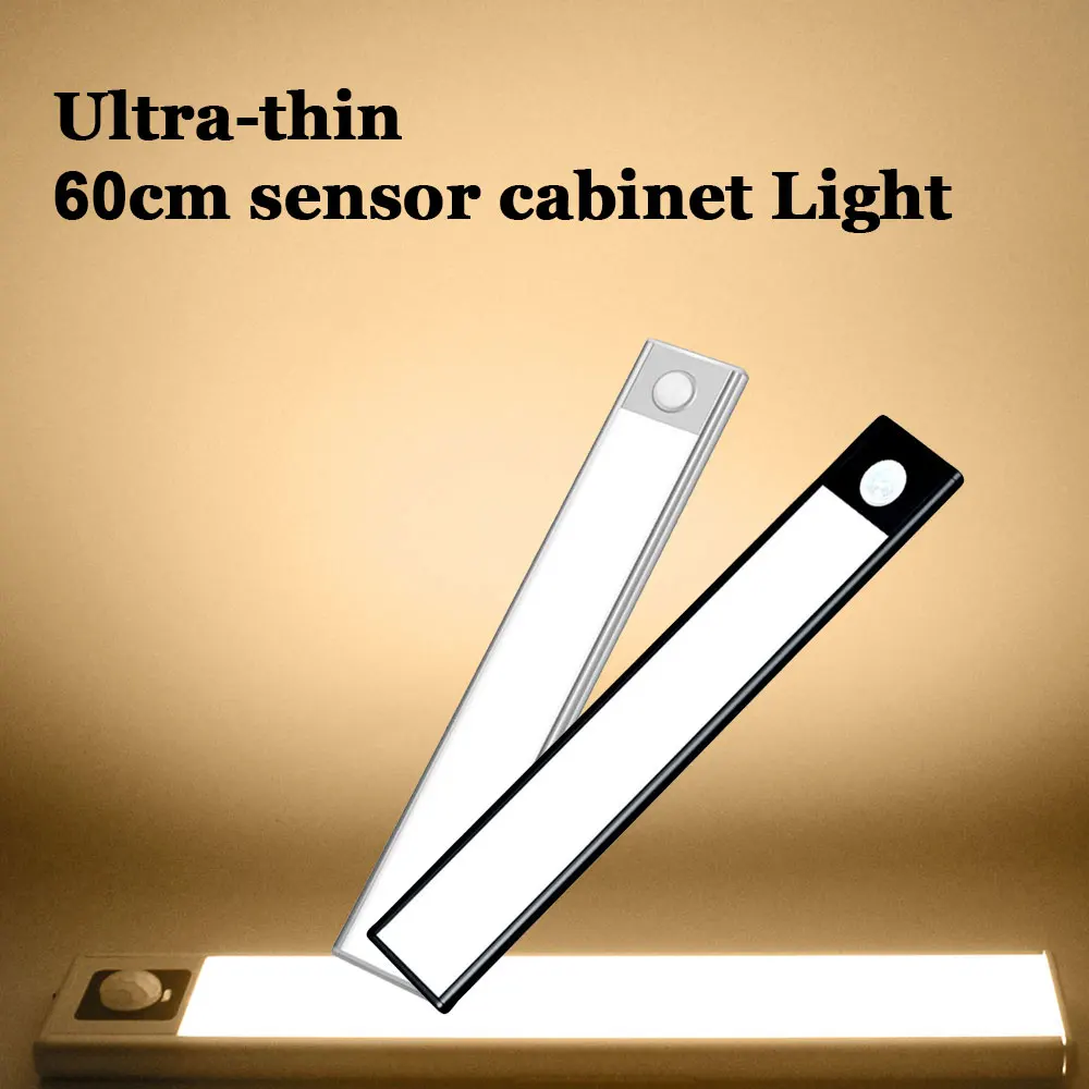 Светодиодный ультратонкий светильник из алюминиевого сплава, лампа с датчиком движения и зарядкой от USB для кухни и лестницы, ночсветильник, 60 см