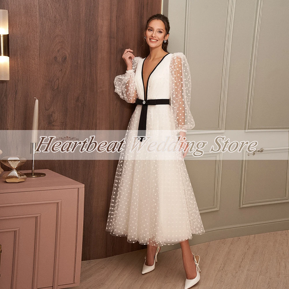 Женское свадебное платье до середины икры, белое простое платье нев...