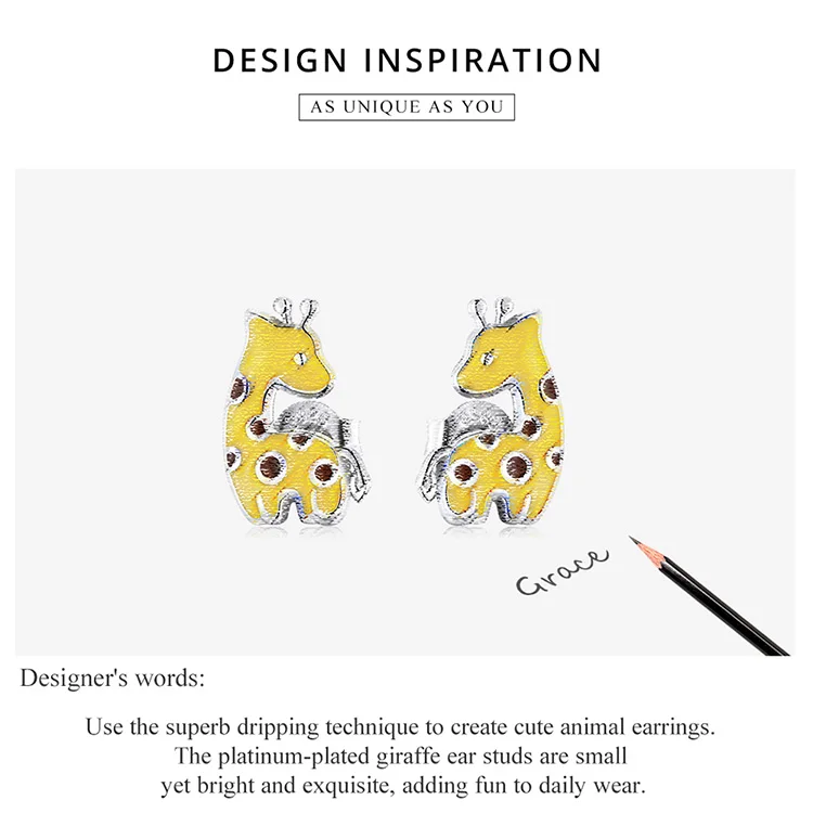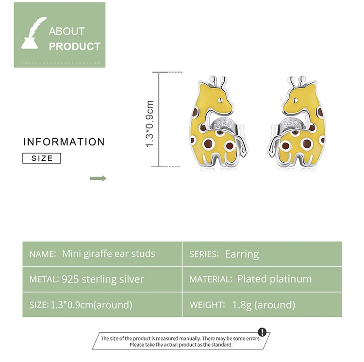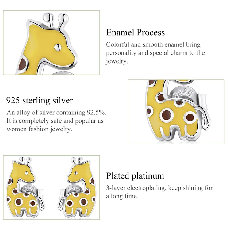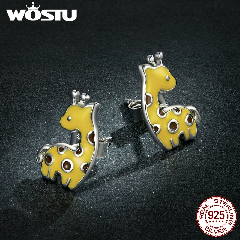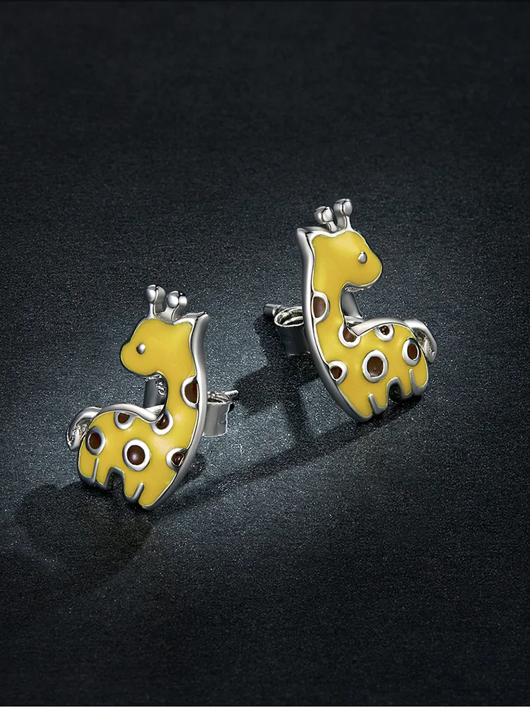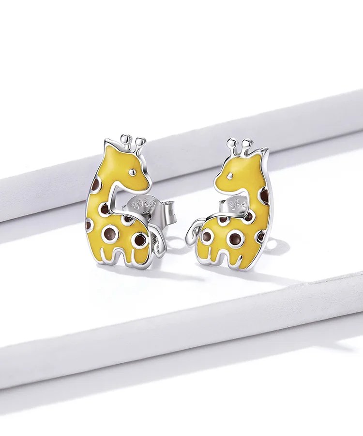 Женские серьги-гвоздики в вечерние жирафа, из серебра 925 пробы