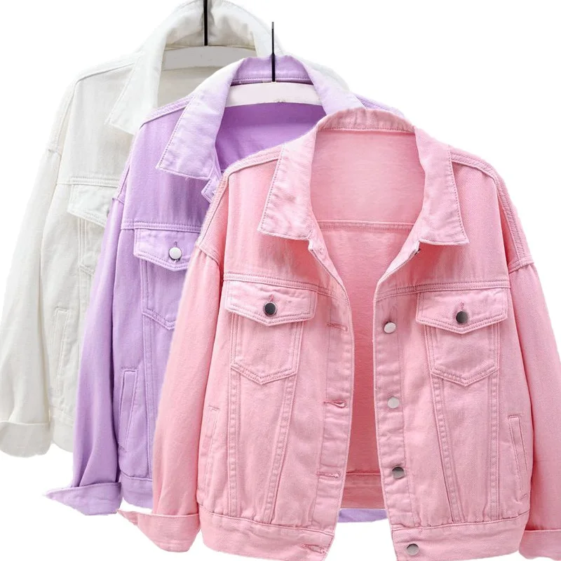 Женская джинсовая куртка, короткая весенне-осенняя куртка, розовые ...