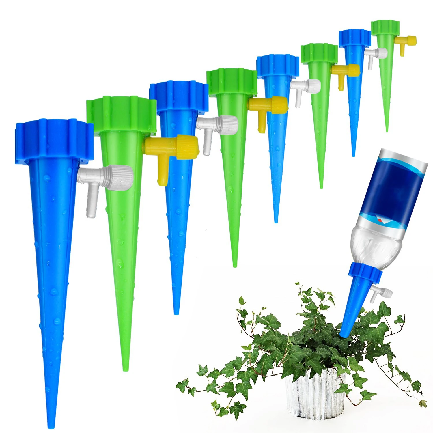 Просто прикрутите шип на полную бутылку воды, затем вставьте заостренный конец прямо в почву возле стебля горшечного растения.