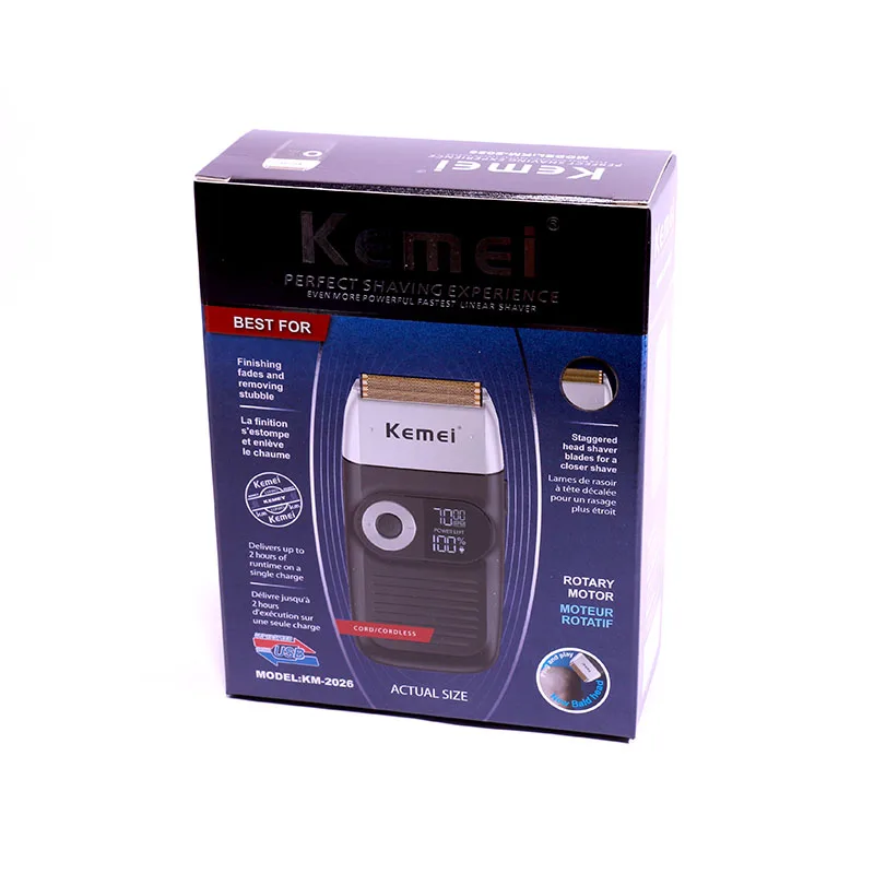 Спецификация:• Изделие: перезаряжаемая бритва• Модель: KM-2026• Входное напряжение: вход 5 В (USB Type-C)• Потребляемая мощность: 5 Вт• Время зарядки: 2 ч• Время использования: около 120 мин• Очистка: с помощью кисти• Цвет: черный или зеленый• Гарантия производителя: 2 года