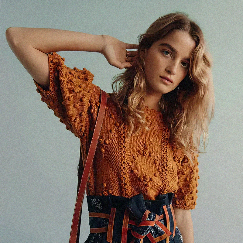 Женский ажурный жаккардовый вязаный джемпер, элегантный винтажный п...
