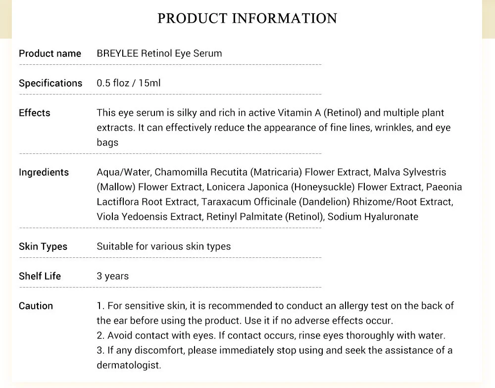 BREYLEE Retinol Сыворотка для глаз удаление морщин против старения тонкие линии укрепляющий массаж глаз ролик увлажняющий лифтинг крем для ухода за кожей * 10 шт