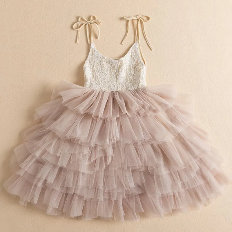 Новое летнее платье для дня рождения для девочек, вечернее платье для маленьких девочек, Кружевное платье-пачка принцессы на бретельках, элегантное детское официальное платье с цветами