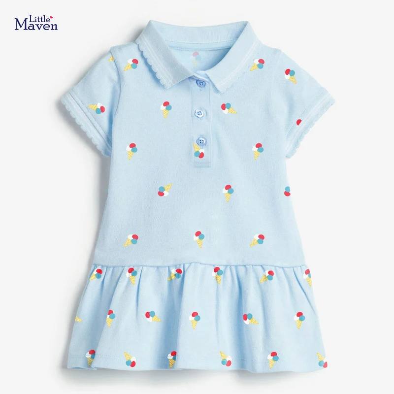 Детская одежда Little maven 2022, летнее Повседневное платье для девочек с мороженым, Симпатичные Поло для маленьких девочек, Vestidos для детей