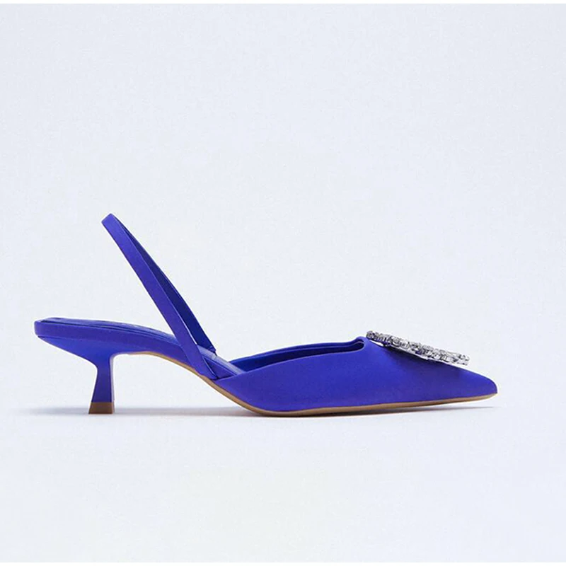 Женские босоножки с острым носком, туфли-лодочки на высоком каблуке-шпильке, без застежки, с кристаллами, весна-лето 2022