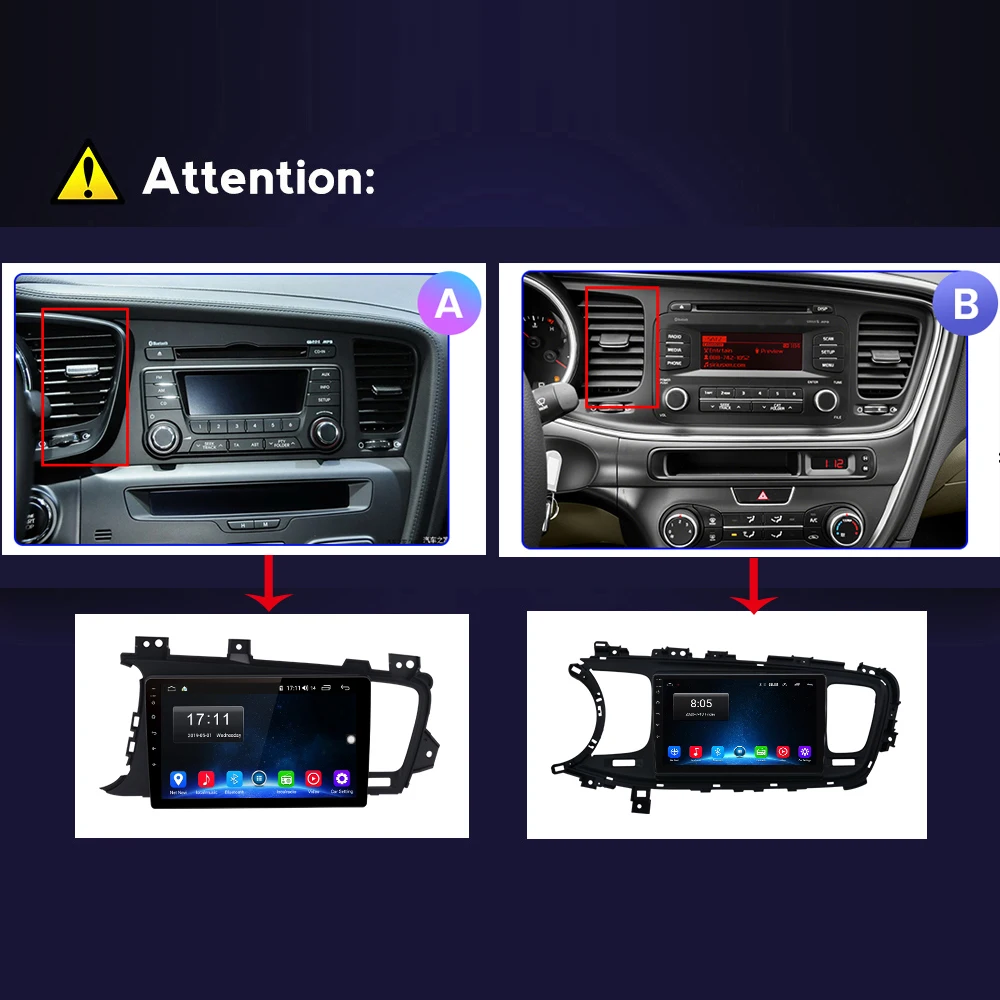 Выберите раму A/B в соответствии с центральной консолью вашего автомобиля.