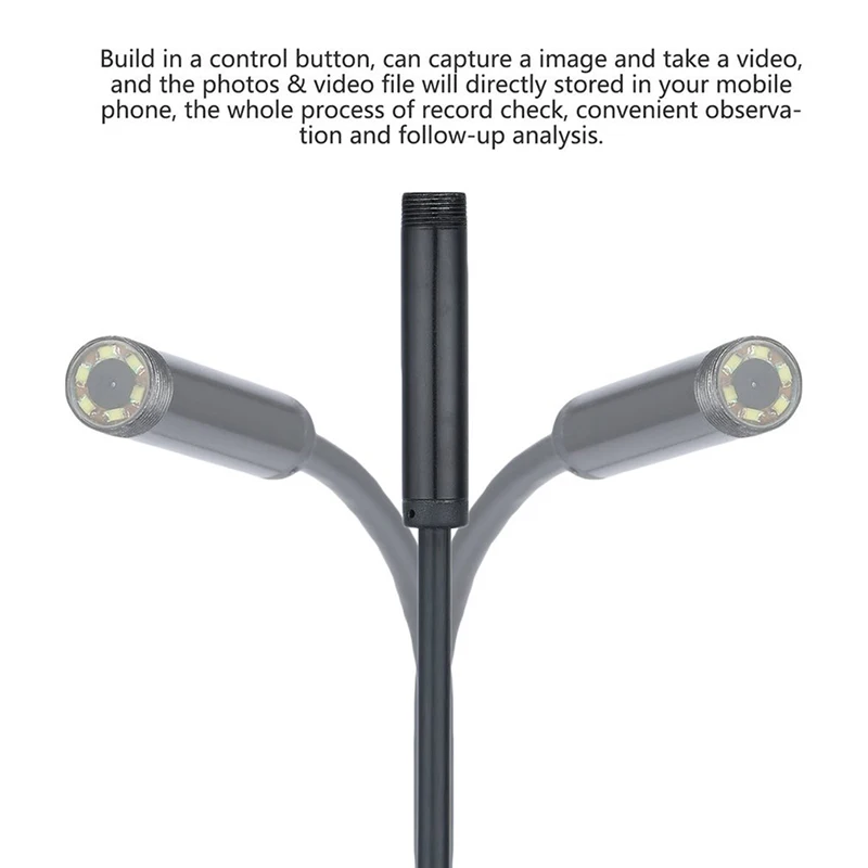 Эндоскоп гибкий, 1 м, 1,5 м, 5,5 мм, IP67, 6 Регулируемых светодиодов