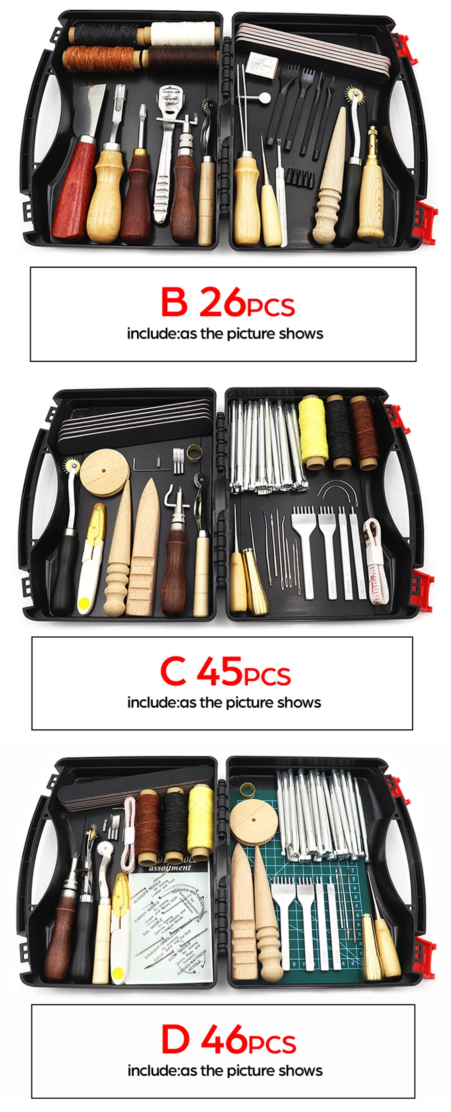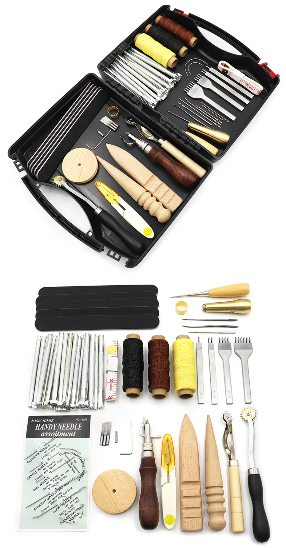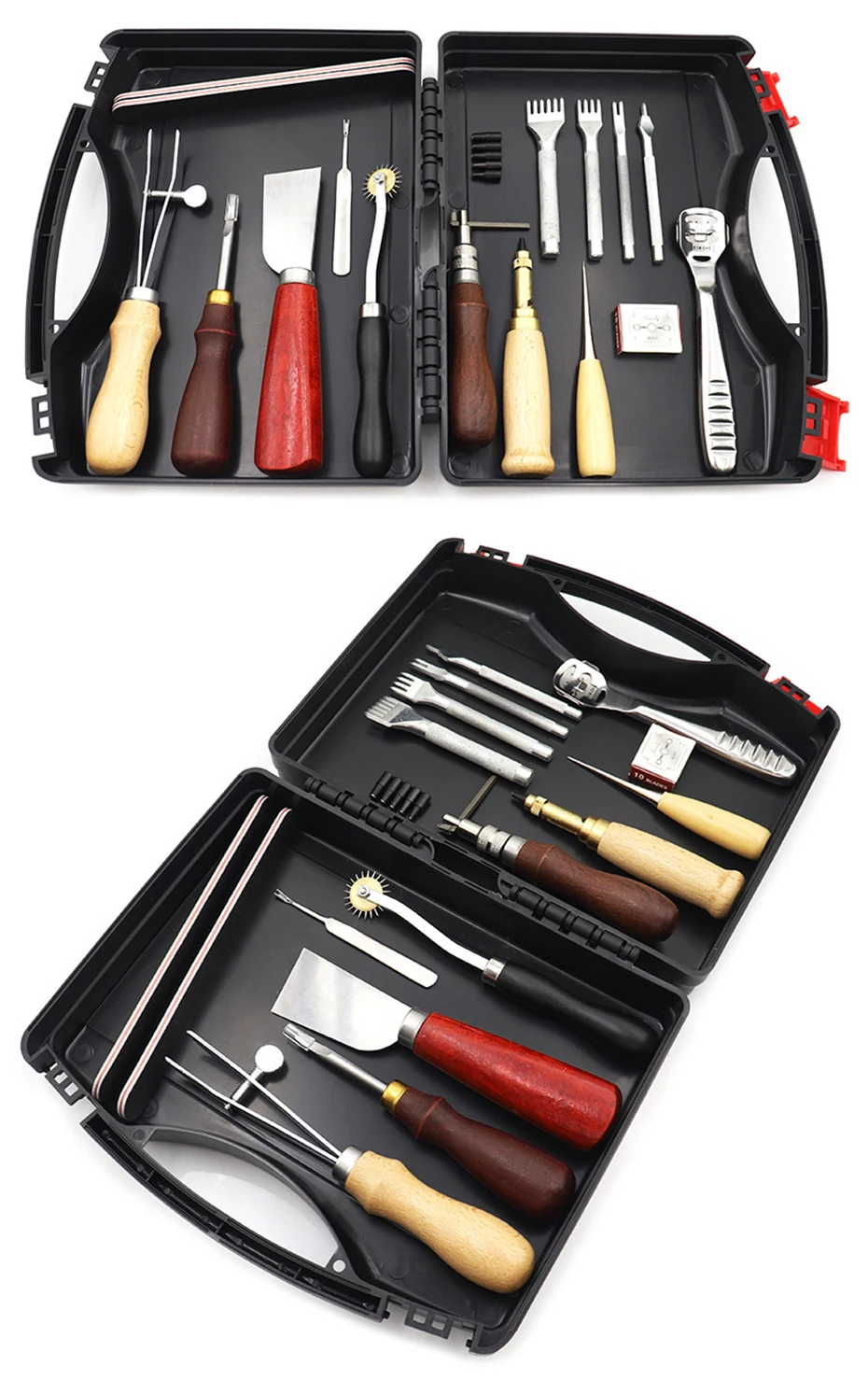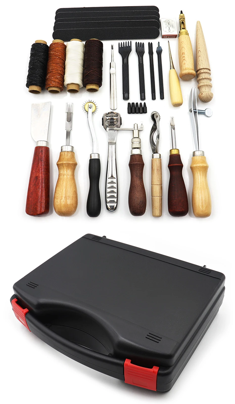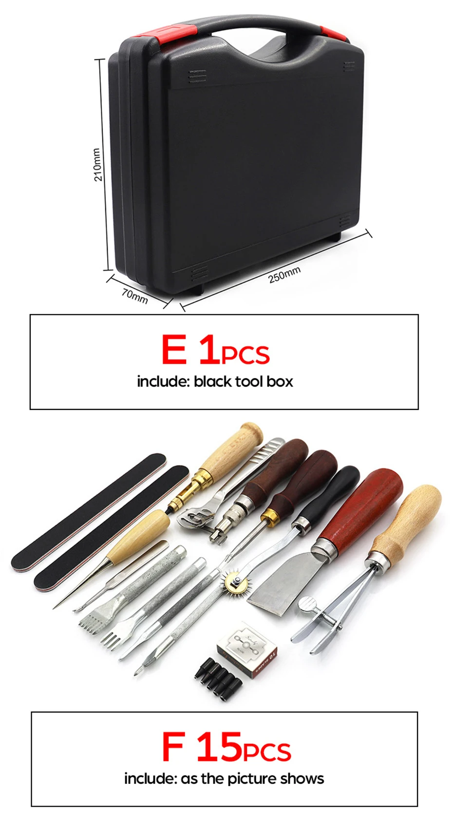 1. Эти кожаные инструменты для рукоделия удерживают штамповку, шитье, резку, склеивание, кромку шлифовки и другие функции для кожевенного ремесла.2. Набор инструментов для изготовления кожи поставляется с высококачественной коробкой для инструментов. Более прочный, чем картонная коробка, очень подходит для длительного использования. Кроме того, все, что вам нужно, включено в этот кожаный ящик для инструментов, будьте организованными, вы не беспокоитесь о том, что потеряете что-либо и можете взять на пояс или кожаную сумочку, сделав проект немедленно.3. Инструменты для тиснения кожи подходят для начинающих и опытных. И его можно использовать в качестве замечательного подарка для родителей, семьи, друзей, особенно для любителей ручной вышивки своими руками.