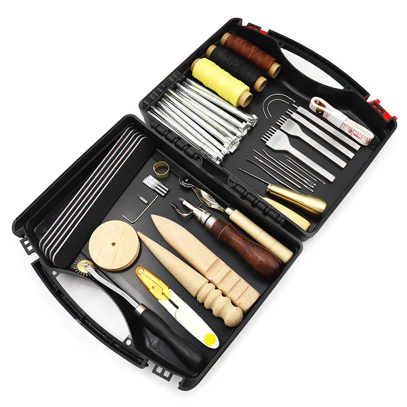 Набор инструментов для кожевенного ремесла, игла для шитья, нитка, перфоратор для кожи, резание, шило, инструменты сделай сам, набор для кожевенного ремесла, товары для ручного шитья