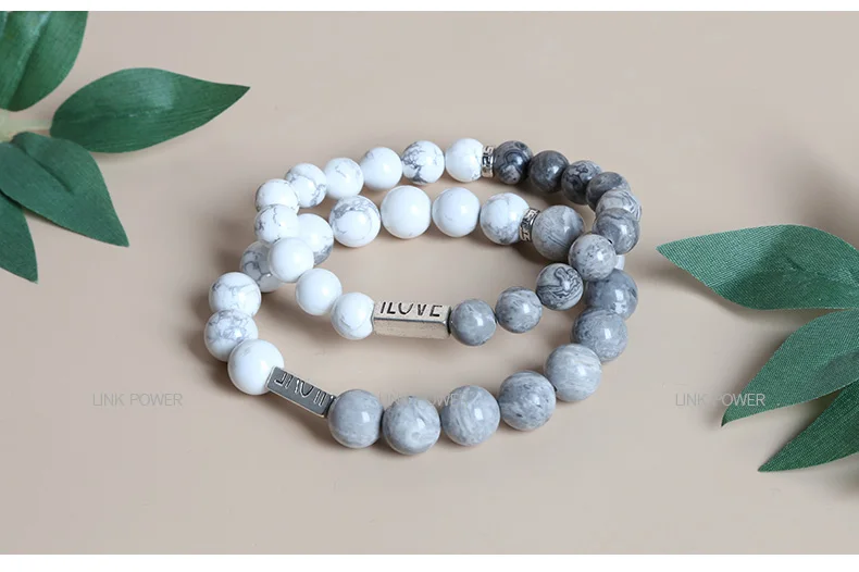 Браслеты JD для мужчин и женщин, эластичные ювелирные изделия ручной работы для пар, браслеты из натурального белого бирюзового камня, с картой, 8 мм, подарок для подруг