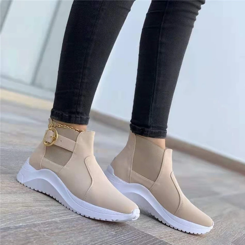 Женские кроссовки на танкетке, однотонные дышащие кроссовки на вулканизированной подошве, с пряжкой, на резинке, повседневные, модель 2021 года
