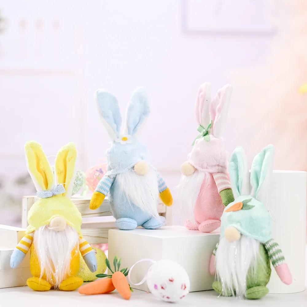 Пасхальные гномы с ушками кролика, маленькие безликие гномы, весенние украшения, пасхальные украшения для дома 2022, украшения для кролика