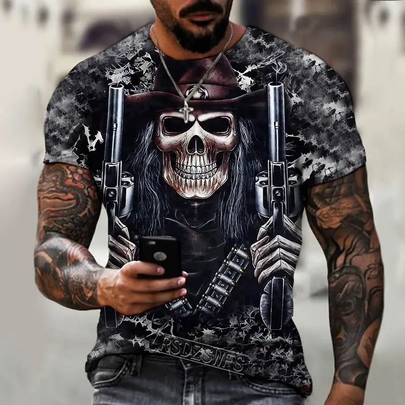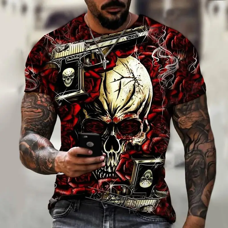Мужская футболка с 3D-принтом, круглым вырезом и черепом