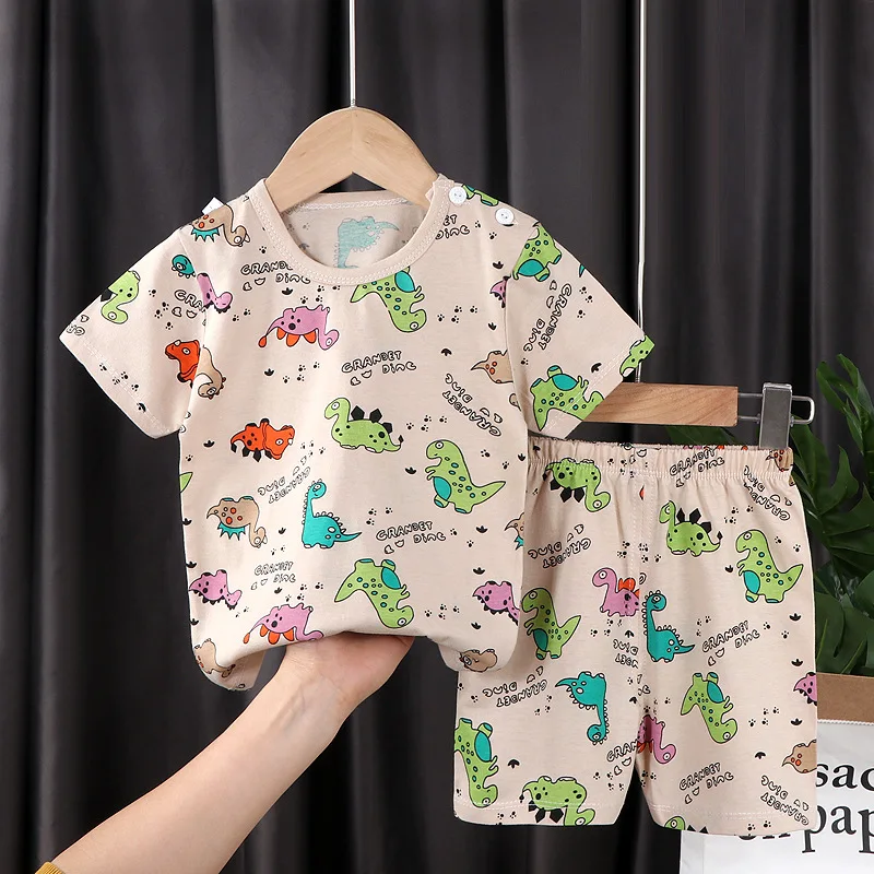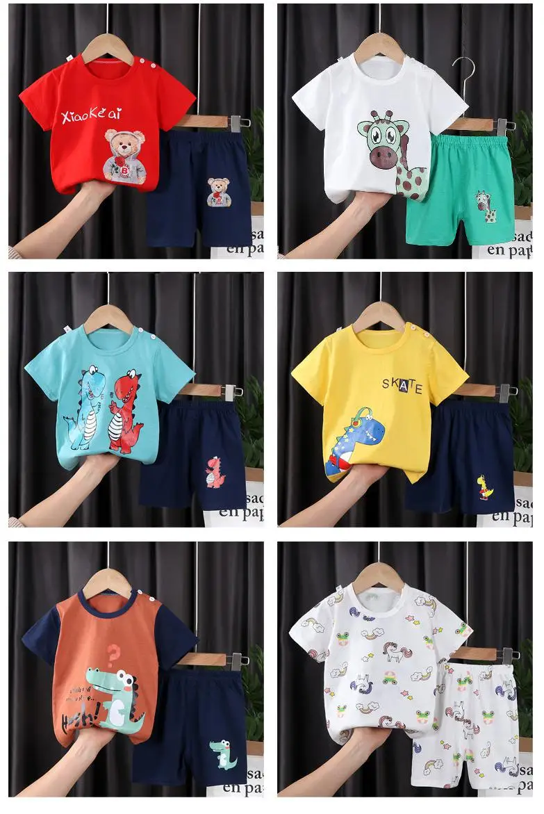 Детская Пижама, одежда для сна, хлопковый костюм для мальчиков, Детская летняя хлопковая футболка с коротким рукавом для девочек, два комплекта, домашняя одежда, одежда для малышей