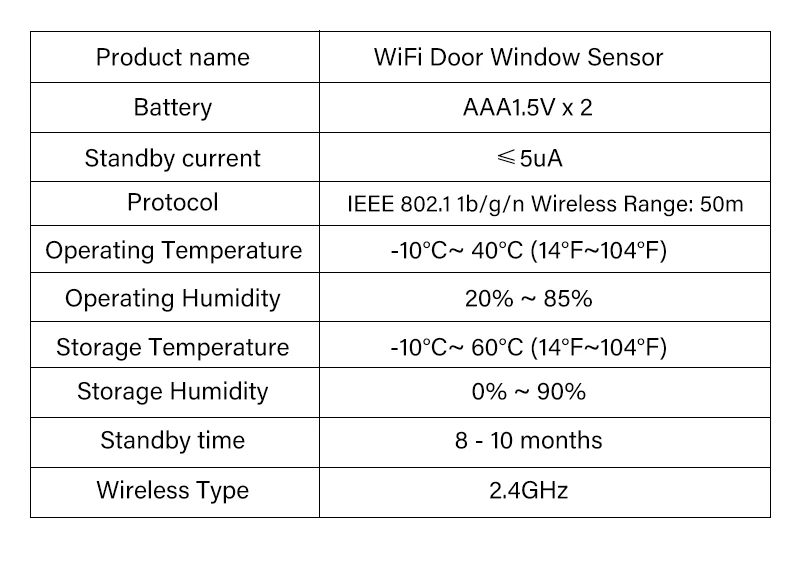 Никаких сложных инструментов установки не требуется. Датчик может быть установлен с двухсторонней лентой или винтами (в комплекте) всего за несколько шагов, И загрузите приложение «tuya» или «Smart Life» из GooglePlay или app Store, чтобы проверить состояние вашей двери/окна.
