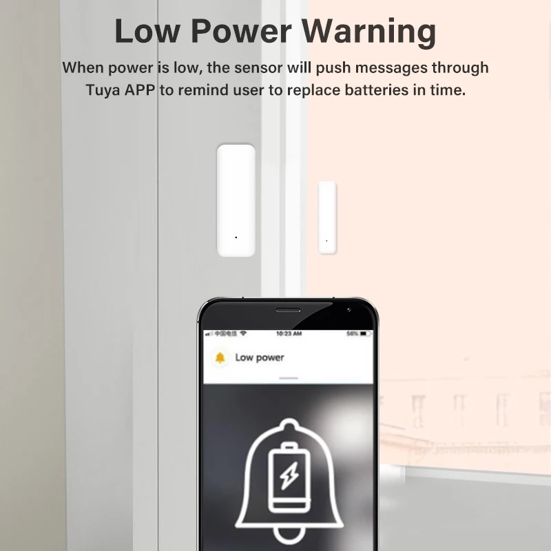 Предупреждение о низкой мощностиКогда мощность низкая, датчик будет толкать сообщения через приложение, чтобы напомнить пользователю о необходимости замены батарей во времени