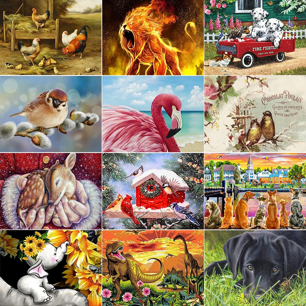Набор для алмазной живописи, 5D мозаика с изображением животных, фламинго, цыплят, собака, лиса, полное круглое сверло, вышивка стразы, искусство, ремесло, украшение для дома