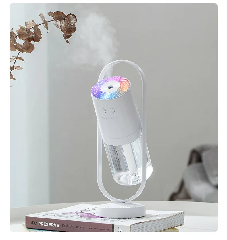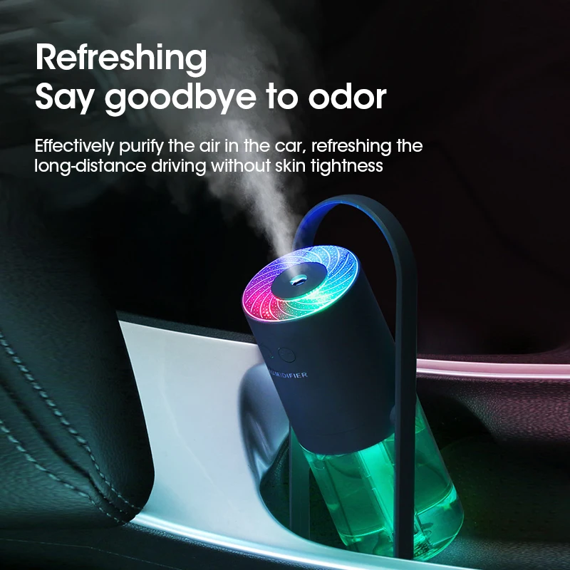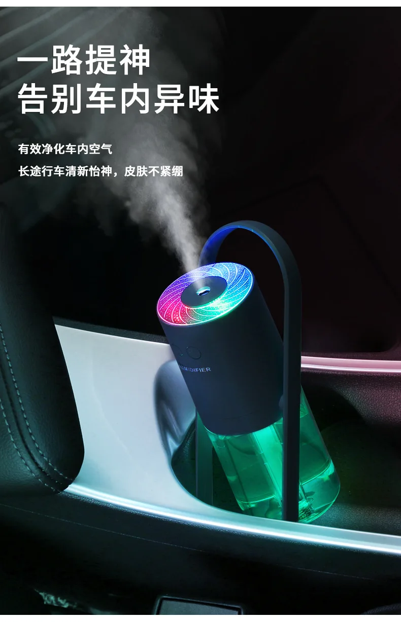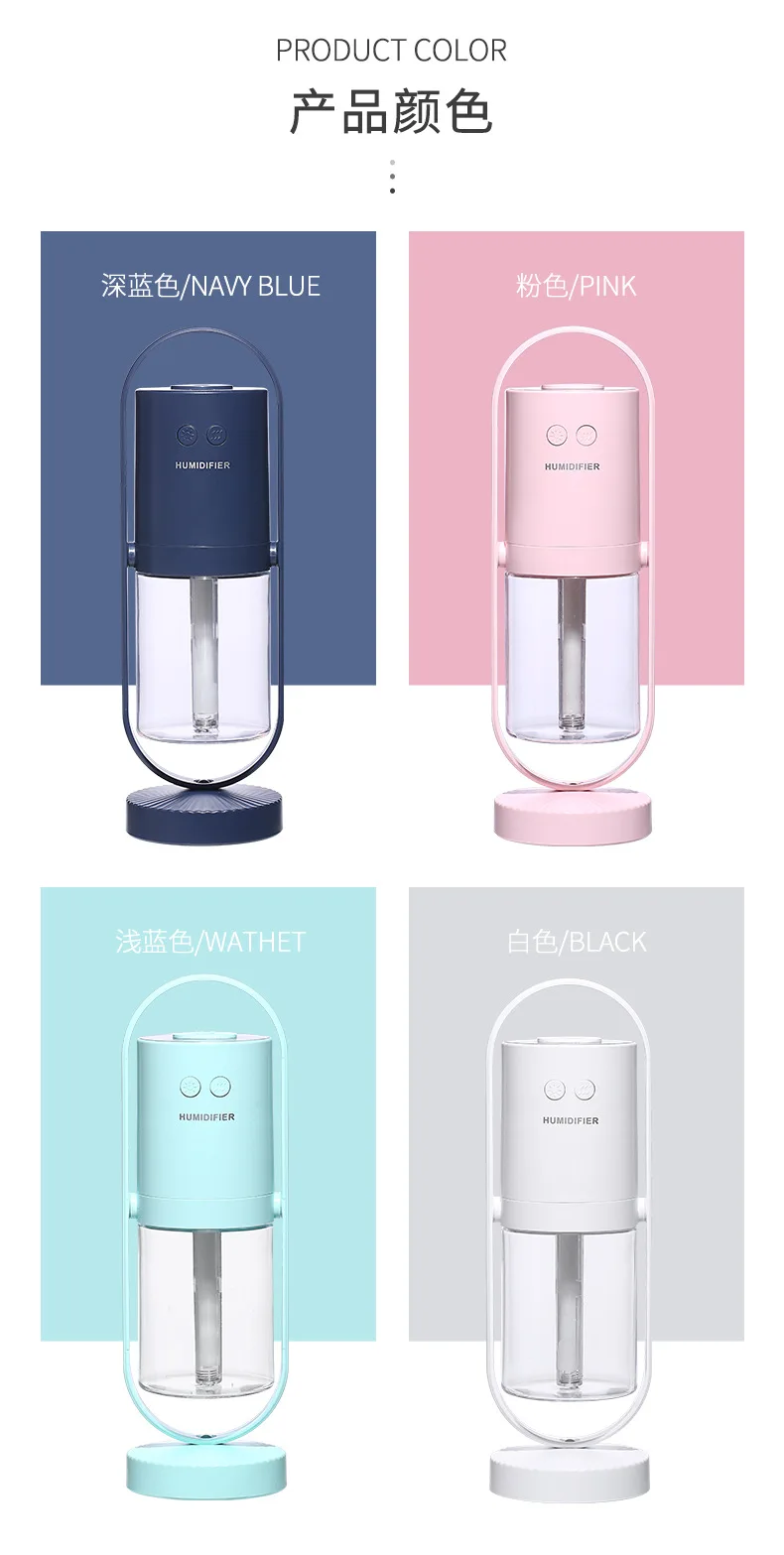 Название продукта: USB увлажнитель воздухаЦвет: белый, темно-синий, светильник-синий, розовыйМатериал: АБС-пластикПитание от: DC5V USBРабочая мощность: около 2-4 ВтРезервуар для воды: 200 млФункции: увлажнение, очиститель воздуха, проекционная лампа, вращение на 360 градусовИспользование: бытовая техника, рабочий стол, спальня, автомобиль